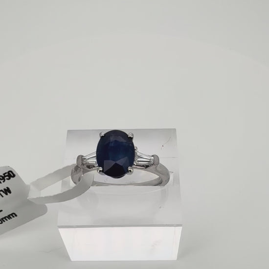2.24ct Royal Blue Natural Sapphire Trilogy Ring in Platinum