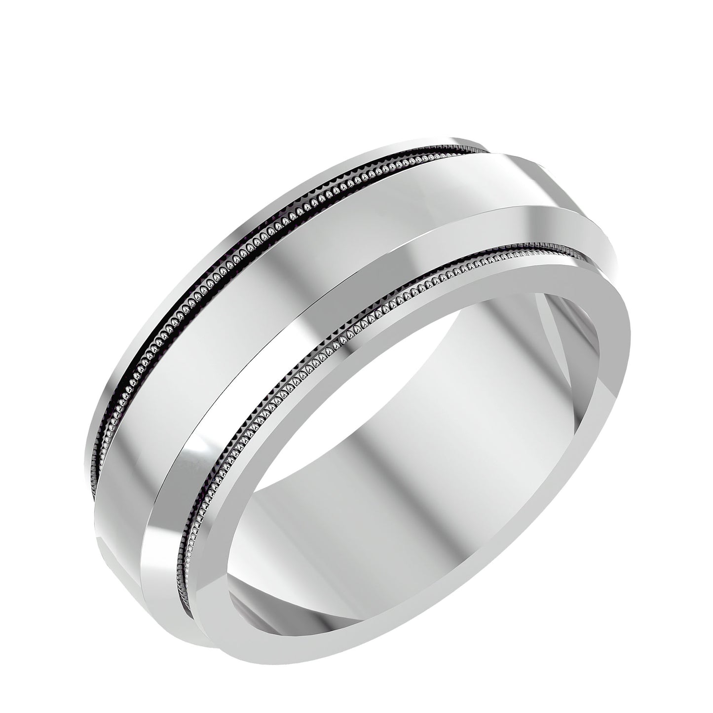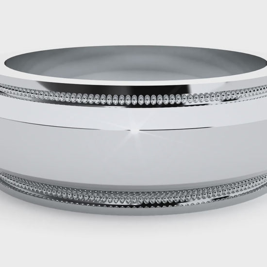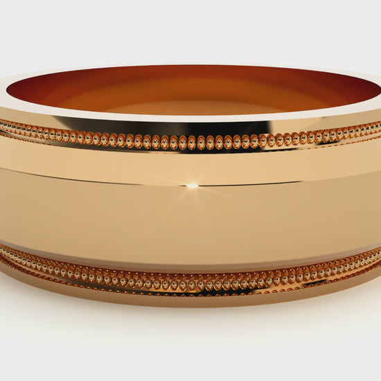 Men's Low Dome Milgrain Carved Edge Wedding Band